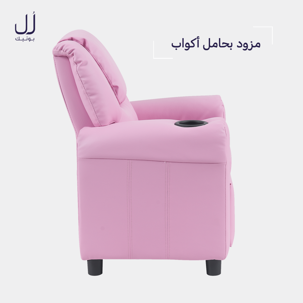 كرسي راحة للأطفال من لول بوتيك يجمع بين التصميم المريح والدعم الصحي لظهر الطفل، مع مزايا عملية مثل مسند الأقدام، حاملة الأكواب، والجلد الآمن القابل للتنظيف بسهولة.